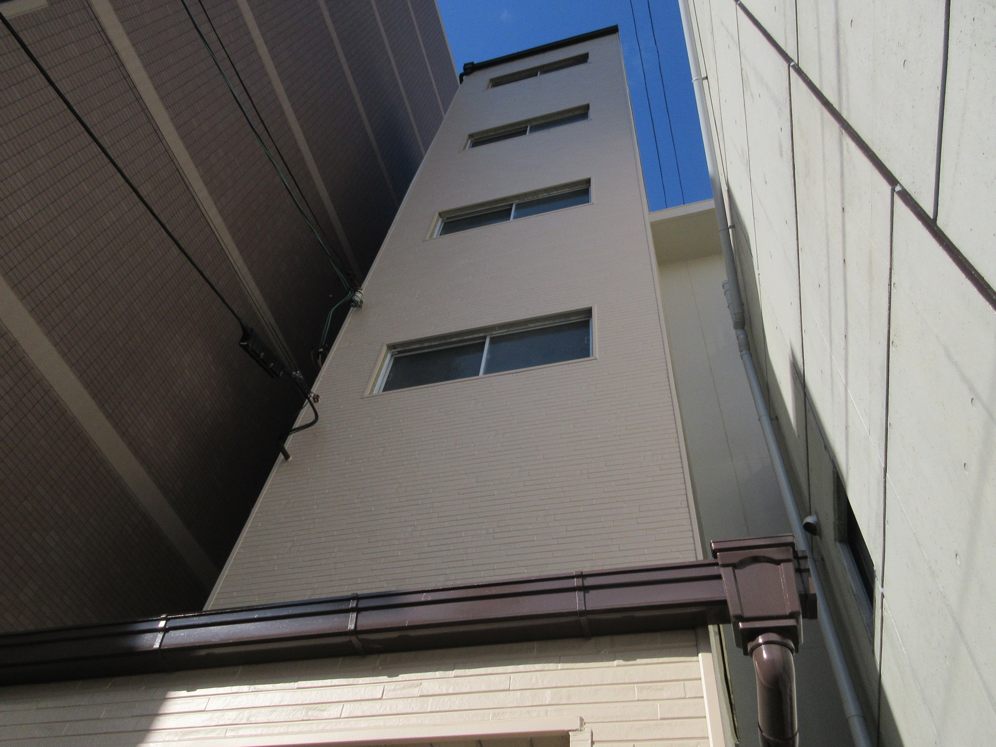 皆さんこんにちは!ラディエントの林です。大阪市天王寺区生玉寺町のTビル様の外壁塗装工事、外壁サイディング工事が無事終わりました。めっちゃ綺麗になりました!