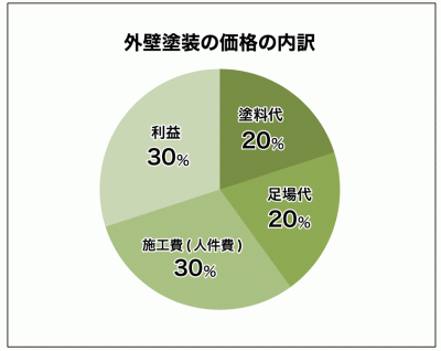 塗料代+工事費用(足場代+養生費+雑費等)+人件費