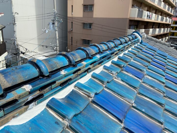 大阪市東淀川区下新庄 K様邸 外壁塗装、屋根漆喰・ラバー、樋・テラス工事リフォーム施工事例