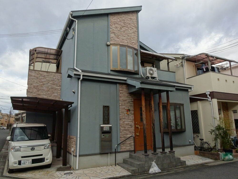 大阪市大正区千島 A様邸 外壁セラミシリコン塗装・棟板金・カーポート設置工事