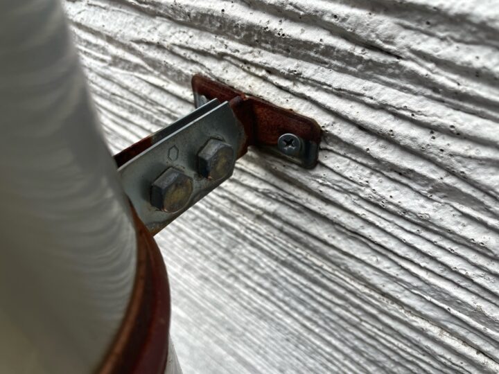 シーリングが硬くなっている状態であり、割れると雨水の浸入経路になります。隙間から入った水分を外壁が含み、そのあと乾くという状態を繰り返すと、外壁材の反り、剥離、内部への漏水に繋がるため、シーリングを打ち換えた上で、塗り替えによって大切な建物を保護することをお勧め致します。鉄部錆び