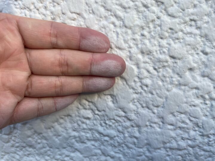 日本語では白亜化(はくあか)とも言い、主に塗装表面が暴露状態のときに紫外線・熱・水分・風等により塗装面の表層樹脂が劣化し、塗料の色成分の顔料がチョーク(白墨)のような粉状になって現れる現象。塗膜の樹脂が劣化して、顔料が析出している状態です。